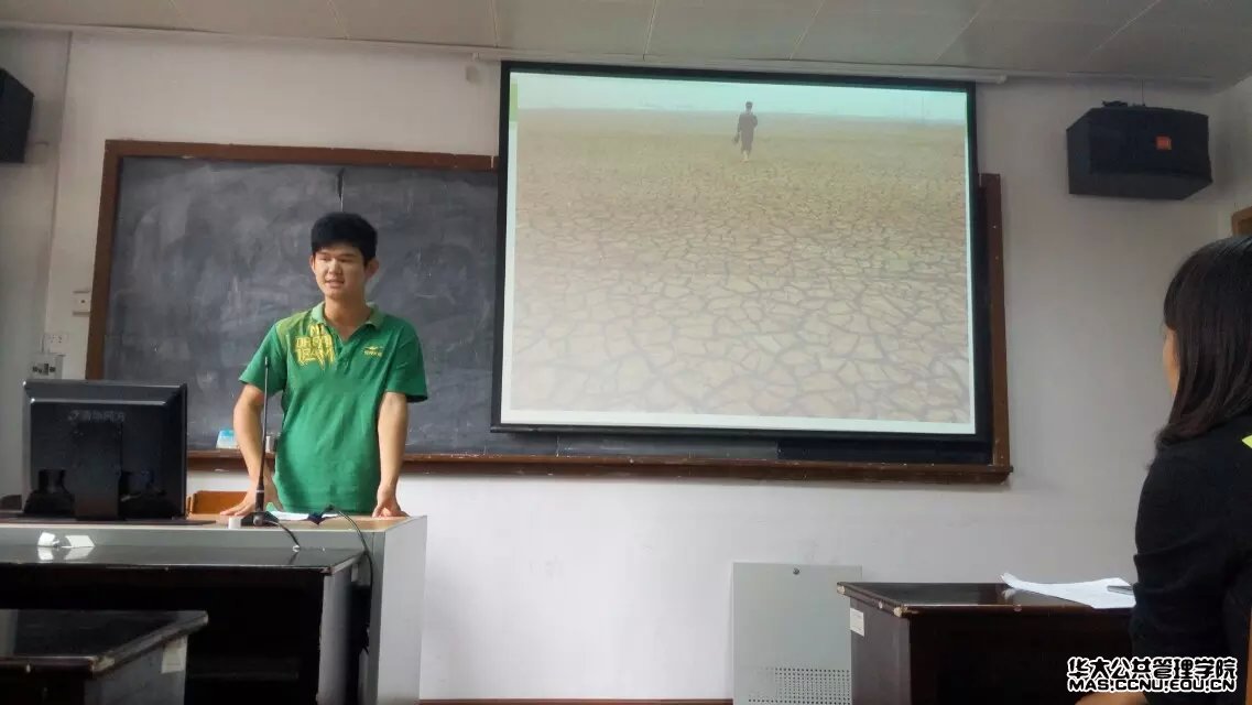 在每个人心目中都有一幅特有的生态美景,然而现实也许与想象背道而驰。同样来自大二的参赛选手唐林从习总书记大力推进生态文明建设的讲话入手,阐述了他对生态文明建设的个人理解。被砍伐的森林,遭到污染的土地让大家看到了生态文明建设的紧迫性。唐林指出我国在加快发展经济的同时要警惕走西方发达国家曾经的老路,拒绝先污染后治理,要走符合本国国情的可持续发展道路。同时也提出每个人都应加强对生态文明建设的关注力度,媒体也应加大相应的宣传力度利用媒体的感染力让生态文明建设更加深入人心。我们既要金山银山,也要绿水青山。