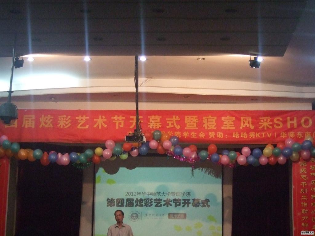 5月6日晚上7时,在管理学院102教室如期举行了第四届炫彩艺术节开幕式暨寝室文化风采SHOW。出席本次开幕式的领导和嘉宾有院党委副书记马新华,院团委书记石嵩老师,辅导员李丽老师及院学生会代表。