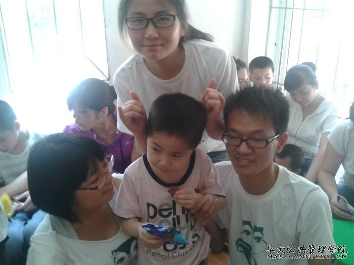 7月3日,怀着不减的崇敬之心,管院2011级志愿者服务队又来到了启明儿童之家。在第一天的经验基础之上,我们向老师询问了各个小孩儿的情况和治疗方法。通过老师的讲解,我们了解到自闭症的形成于先天和后天都有密切的关系,不同的小孩儿患病的程度也有所不同。老师们都是根据各个小孩不同的情况科学的安排其对应课程。针对所接受自闭症患儿的特点该福利院主要开设了感统课、电脑课、动手能力课、个人综合素质课等课程。由于自闭症患儿的接受能力较正常孩子要差很多,通常同一个课堂的内容需要重复很多次才能在他们的脑袋里留下印象,这就需要特教老师的耐心指导。