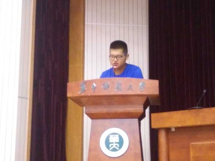随后2016级博士生代表赵锦同学、2016级硕士生代表许诺同学,2016级本科生代表张琦同学、2016级少数民族预科生信心同学,在校学生代表林宇阳同学依次上台发言。其中本科生代表张琦同学在演讲中借用崔卫平老师的一句话,你所站立的地方,就是你的中国。并同时抒发感慨,那么我们所站立的地方,就是我们的华师。赢得了在场全体师生的热烈掌声。