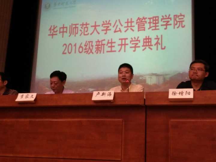 开学典礼在庄严的国歌中拉开帷幕。首先,院长卢新海教授对新同学的到来表示了热烈的欢迎,并向广大新生提出了美好的希望。希望同学们在学习伊始就能够牢牢紧抓本职工作,生活中多多充满关爱和理解,同时树立远大正确的职业理想。卢新海教授表示:广大同学们在选择了银娱GEG优越会,公共管理学科的同时,也在塑造着公共管理学科和公共管理专业。希望学院的教育能够为新的同学提供更多的养分,带着广大新同学更上一层楼。