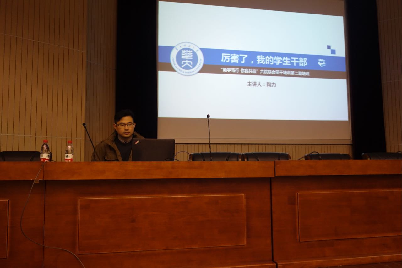 本次培训,校团委陶力老师以“厉害了,我的学生干部”为课程主题。通过引用习近平主席“人没有理想信念,就会得软骨病”一番话,打开了“讲理想”的话题。陶力老师通过讲述上海知青怀着信念造就了共青城的故事,点明了学生干部要将个人理想和家国理想辩证统一的重要性。在“讲政治”这一话题中,陶力老师强调学生干部要有原则,要讲政治,更要做到在每一个细节中都体现政治。