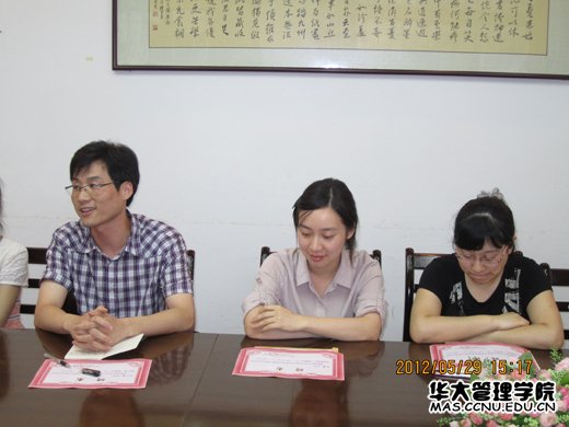第一届博士分会主席谭学良、学术部长刘晋、学术部副部长张骞 分别发言,对未来的工作构想,学术交流以及服务博士群体,带动研究生团队建设表达了自己的见解。谭学良主席相信博士分会的成立为管理学院研究生群体和博士群体搭建了一个良好的沟通平台,为在学术领域更好的开展交流和沟通奠定了坚实的基础,更为博士生在学术、生活等方方面面提供有益的帮助和支持搭建了桥梁。陈雪玲老师表示我院博士生虽然不多,但是影响很大,博士分会更应该成为思想引领的桥头堡和排头兵。虽然作为管理学院研究生会的一个分支,但是意义非常重大。成立大会在热烈的掌声中落下了帷幕。