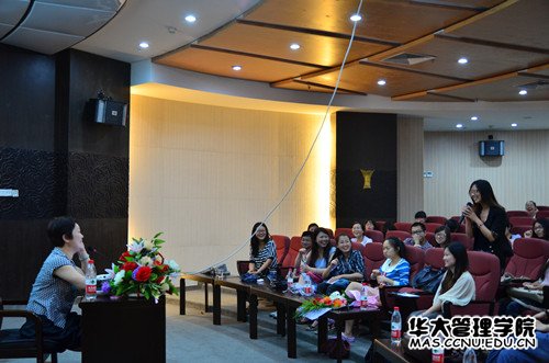 整个讲座期间,邓老师的真诚、坦率感染了现场所有人,她的精彩演讲令同学们不时爆发出阵阵掌声。在最后现场互动环节,气氛热烈,女同学们踊跃提问,亲切的邓老师悉心指点,为女性如何处理好自我、爱情和事业三者之间的关系提出具体指导建议,鼓励并强调女生们要学会“自立、自强、自尊、自重、自爱”,邓老师的热情解答将现场气氛推向了高潮。
