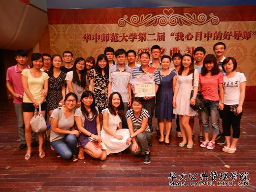 一阵悠扬的西洋乐曲缓缓拉开了颁奖典礼的序幕,热情洋溢的主持人用饱含深情的语调作了精彩的开场白。紧接着,主持人逐次介绍获得“我心目中的好导师”称号的十名老师,导师们的先进事迹在大屏幕上缓缓播放着,辛勤耕耘的导师们把时间留给了学生,把足迹留在了三尺讲台上,把青春奉献给了科研事业,他们的事迹感染了在场的每一位师生。傅广宛教授是我院唯一一位两次被评为“我心目中的好导师”的获奖者。主持人读了这样一段颁奖词:您总是说“还可以做得更好一点”,是您的严格铸造了我们追求卓越的品质;您总是说“学习之余一定要注意身体”,是您的关爱塑造了我们璀璨的笑容。您朴素正直,您谆谆教导,您从不放弃任何一个学生,您专注地走好每一步,承载着肩上的责任执着前行,无怨无悔。走进您,总会发现:您是我们心目中当之无愧的好导师。诚然,傅老师您爱生如子的品质让我们每一个人敬佩。