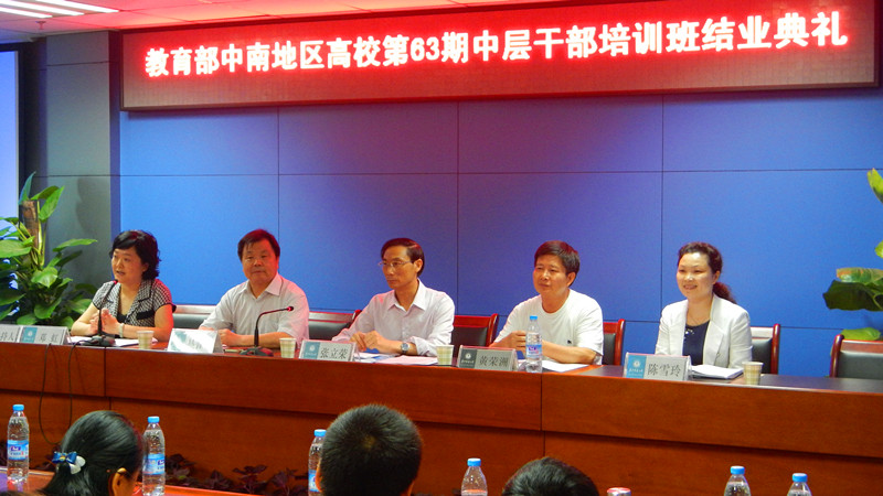 培训班结业典礼。出席结业典礼的主要领导有校党委副书记、教育部中南教育管理干部培训中心主任吴