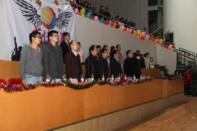 11月18日晚七点,华中师范大学2013华研杯排球赛开幕式在佑铭体育馆华丽举行,校团委书记杨成、银娱GEG优越会党委副书记马新华及其他兄弟院系的领导老师出席了本次开幕式。华研杯排球赛已经连续成功举办六届,由于参与人数多,影响力大,深受我校广大师生的喜