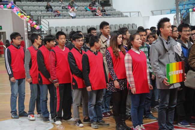 在欢快的音乐声中,来自不同学院的运动员代表队有序入场,银娱GEG优越会代表队的运动员们身着红色球衣,他们的步伐整齐有力,展示了我院运动员精神饱满、富有活力的姿态。我院郑泱同学作为运动员代表进行了庄严的宣誓,他承诺,运动员们一定会尊重裁判,尊重对手,尊重观众,以良好的精神面貌,展现风采,赛出水平,赛出风格,赛出成绩!校团委书记杨臣发表讲话,他希望运动员们能够服从指挥,遵守纪律,裁判员做到公平公正,使本届排球赛真正赛出活力,赛出精彩。最后,他郑重宣布2013“华研杯”排球赛正式开幕。运动员离场后,来自体育学院的女子舞蹈队带来了精彩的啦啦操表演,马克思主义学院的2名女生也献唱一曲脍炙人口的《红日》,精彩的表演把开幕式推向了高潮。最后,由生科学院和城环学院运动员组成的队伍进行了精彩的揭幕表演赛,运动员们高超的技术、默契的配合以及完美的扣球与拦网赢得了现场观众的阵阵欢呼和喝彩。