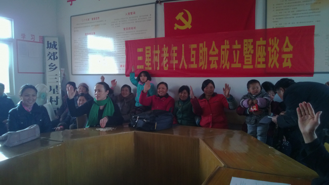 2013年11月28日至12月6日,“关爱农村老年妇女”项目组在我院博士生导师刘筱红教授的带领下,前往广水市的黄金村、马蹄桥村与三星村进行深度调研。在此次调研中,项目组成员与当地的老人、村干部和村民举行了多次座谈会,在会议上留守老人们讲述了因为子女外出务工所带来的生活不便并对项目组提出的农村互助养老模式表示出了浓厚的兴趣。在项目组的建议和帮助下,来自三个村庄的近百名老人在会上分别成立了自己的老年人养老互助会,制定了相应的章程,并同时选举产生了各村互助会的会长与副会长。