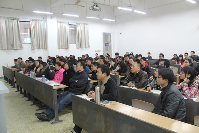 讲座在与学子们的互动中慢慢接近尾声。汤教授渊博的知识、稳健的性格、幽默的话语赢得了各位学子们的声声好评与连连的掌声。