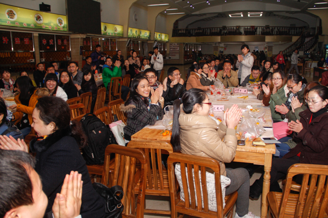 此次包饺子活动非常独具匠心,不仅可以使同学们亲自动手包饺子,与导师,学姐师兄零距离接触,同时还设有水果拼盘大赛。在包饺子环节,同学们各自从食堂窗口领来面皮和馅后,开始分工合作。桌前不时传来欢笑声和嬉戏声,不一会儿,一个个奇形怪状而又包含同学们真情和创意的饺子被包了出来。包好的饺子即刻送到食堂工作人员那里,片刻过后热腾腾的饺子呈现在大家面前。同学们拿起碗迫不及待的想品尝到自己亲手做的饺子,大家也表示能吃到自己亲手包的饺子很幸福。包饺子环节结束后,万众期待的水果拼盘活动开始了,各组同学拼创意,拼手艺,拼速度,不一会儿,形态各异的水果拼盘展现在了大家面前。各组作品各有特色,赢得了老师和同学的赞许。最后,以李明为代表的孟凡导师组立体的创意思维,娴熟的手艺,精致的雕刻赢得同学老师一致好评,夺得了此次比赛的冠军。费军导师组和冷向明导师组分别夺得二,三名。