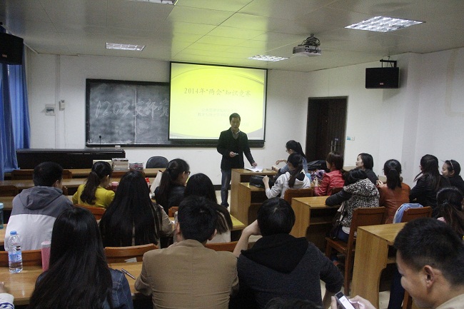 为了提高同学们对两会知识的认知,及时把握国情民意,增强爱国意识和责任意识,4月25日下午四点,由我院研究生会、数学与统计学学院研究生会联合组织的2014年两会知识竞答活动在我院238教室顺利举行。本次知识竞答吸引了来自多个学院的代表队积极参加,知识竞答活动由我院研究生会学术部部长尤盼主持。