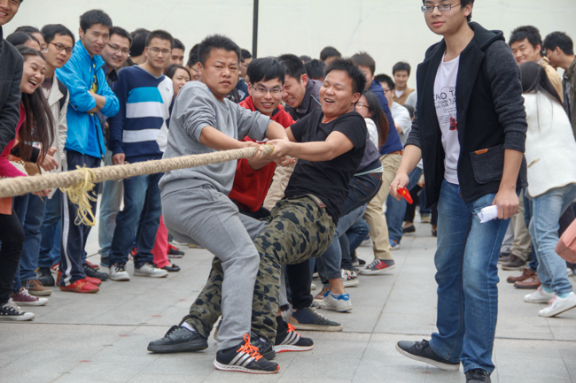 春暖花开的时刻,正值体育运动的最好时节。4月26日上午十点,由我院和法学院联合承办的“体育嘉年华”之拔河比赛在佑铭体育馆精彩拉开帷幕。据悉,拔河比赛是我校趣味运动会的传统项目,深受广大学子的喜爱,而本次拔河比赛也吸引了来自15个学院的代表队参赛。赛场上,不仅有运动员们咬紧牙关,众志成城,坚持不懈;也有啦啦队员呐喊助威,加油声此起彼伏,震耳欲聋,每个人都充分享受运动的欢乐与合作的愉快。 在管院运动健儿的共同努力下,我院代表队最终获得拔河比赛的第五名。