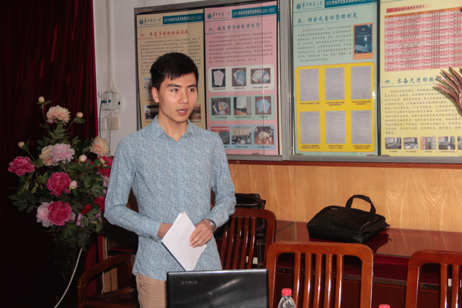 在评选开始之际,魏老师简要陈述了本次评选活动的相关要求和内容。随后,参加评选的2011级学生卢同庆、2013级学生刘栩源等五位同学依次对自己在学习、生活、社会实践等各方面情况作了生动、形象的汇报。首先出场的卢同庆同学向老师和同学们展示了自己的优异成绩:在科研方面,她仅在核心期刊上发表的文章就有三篇;在学习上,她获得国家奖学金在内的多种奖项,并被保送攻读博士研究生学位;在组织生活上,她完美完成了作为党支部组织委员的各项工作。而随后出场的石蕾同学则以一个小故事作为开头,向大家展示了自己内心的坚强,与她在社会实践方面的突出表现。皮肤黝黑却有着灿烂笑容的陈春光同学则用一种比较朴实、真诚的方式和大家分享了自己的学习、找工作和考博的历程,表现了自己永不服输、拼搏向上的自强不息的精神劲头。另外一位让大家印象深刻的参选者是有着浑厚、动听声音的2013级同学刘栩源。他结合多媒体,向大家生动讲述了他在新疆支教生活的点点滴滴。展示了他全心全意地在支教小学授课和组建广播台的经历。而他的这种扎根基层、服务边疆、吃苦耐劳、乐于奉献的精神也给在场老师和同学们留下了良好的印象。压轴出场的黄胜胜同学用自己在学习上的刻苦努力,在生活上的勤俭节约,行为规范上的严格自律感染了在场的每一个老师与同学。