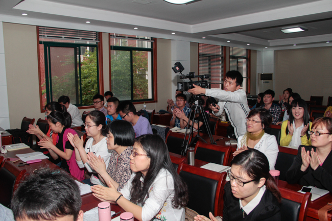 讲座伊始,杨老师开门见山的指出“刺激—心理—行为”和“刺激—(领导心理、组织心理、群体心理)个体心理—行为”是组织行为学的两大思维方式,并结合实际和案例对这两大思维方式进行了详细的讲解;接下来杨老师以自己所做的“教研组的组织文化变革”研究为例详细为大家介绍了“刺激—心理—行为”这种思维方式如何在研究中应用,在这个过程中杨老师反复强调理论建构是研究的前提,并鼓励大家在研究中尝试着进行理论建构;然后杨老师以“学校组织伦理气氛:教师道德成长的德性支持”的研究为例介绍了刺激—(领导心理、组织心理、群体心理)个体心理—行为”这种思维方式在研究中的应用,在这个过程中杨老师提出了自己对“领导心理、组织心理、群体心理、个体心理”之间关系的独到见解,他指出它们之间是包含与被包含的关系,领导心理的影响范围最广,其次是组织心理、群体心理,最后是个体心理;最后,杨老师对同学们提出的“为什么四种心理的关系是领导心理影响组织心理,组织心理影响群体心理,群体心理影响个体心里”以及“如何在研究中进行理论建构”等问题做了详尽的解答。