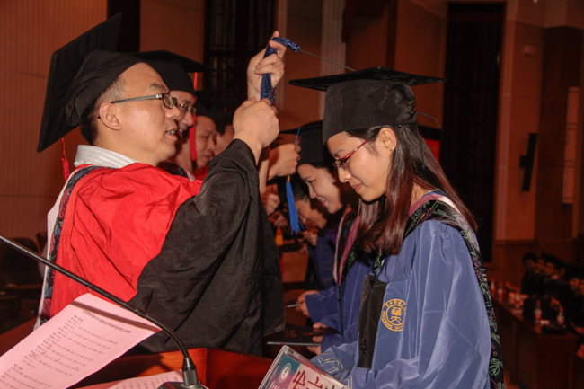 在学位授予仪式阶段,全体本硕博毕业生依次列队上台,鞠躬行礼,接过学位证书。老师们则为学子们拔苏正冠,祝贺他们学业有成。另外仪式分别公布了姚德超、汪超、卢同庆和董念念等78人次的“优秀毕业研究生”、“研究生优秀学位论文”“研究生科研奖励获得者”、“优秀本科毕业生”和“‘鸿鹄’奖学金获得者”的名单并做了相应奖励。仪式结束后,全体本硕博毕业生依次进行了合影留念。