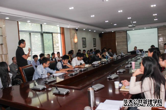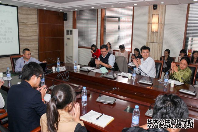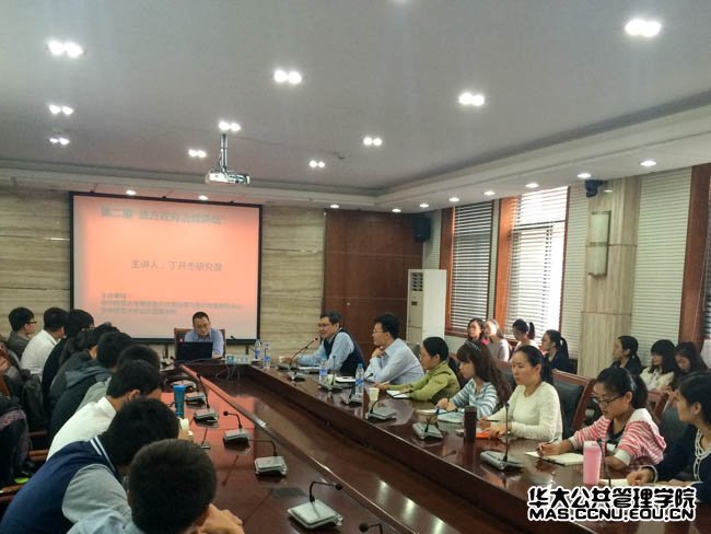 2014年10月18日上午9时30分,由华中师范大学银娱GEG优越会和湖北地方政府治理与地方发展研究中心共同举办的第二期“地方政府治理讲坛”在科学会堂301室举行。中共中央编译局世界发展战略研究部经济发展研究处处长丁开杰研究员为我院师生做了题为“地方政府推动社会治理创新的实践——以广东为例”的精彩演讲。本次讲坛由学院副院长徐增阳教授主持,徐军玲、冷向明副教授,魏寅老师以及学院数十名博士、硕士研究生前来聆听了演讲。