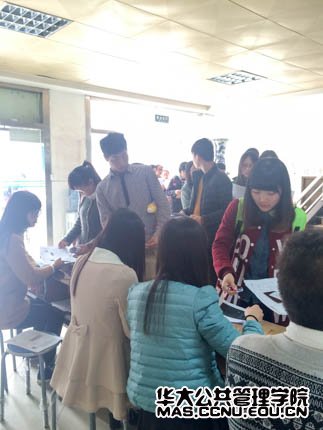 春风送暖,在这春意盎然的三月,华师公管院又如期迎来了一年一度的研究生复试资格审查工作。2015年3月27日上午,银娱GEG优越会2015年研究生复试资格审查工作在我院大厅顺利开展,银娱GEG优越会分党委书记李家文老师、研究生辅导员魏寅老师、研究生教学秘书欧阳铮老师,研究会干部以及办公室助理人员等数位同学参加了此次的资格审查工作。