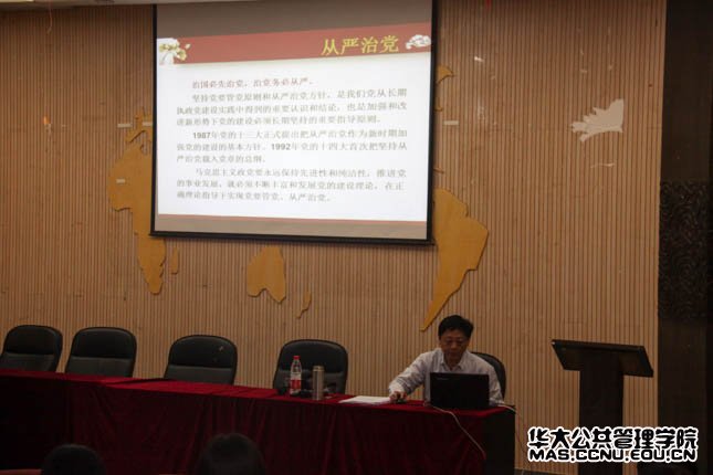 讲座紧紧围绕“从严治党”、“强化宗旨意识”和“做一名合格党员”三部分展开。讲座伊始,李书记便指出,治国必先治党,治党务必从严,党要管党原则和从严治党的方针是我党在长期实践中得出的重要认识和结论。而后,他结合习总书记系列重要讲话引出了从严治党的现实背景,并提到,全面从严治党是现代治理体系的根本保证,是深入推进反腐败斗争的迫切需要,是开启党建新常态的必然要求。随后,他进一步强调,新形势下从严治党要坚持“落实从严治党责任;坚持思想建党和制度治党紧密结合;严肃党内政治生活;坚持从严管理干部;持续深入改进作风 ;严明党的纪律;发挥人民监督作用;深入把握从严治党规律”八点要求。对于强化宗旨意识,他则表示要充分认识新形势下增强宗旨意识的重要性和紧迫性,要深刻理解增强宗旨的具体要求,躬行群众路线,加强党性修养。要想成为一名合格的青年学生党员,一是要坚定理想信念,真正从思想上入党,二是要加强自身修养,做到德才兼备,三是要明确现阶段的任务,勤奋好学,发挥党员先锋模范带头作用。