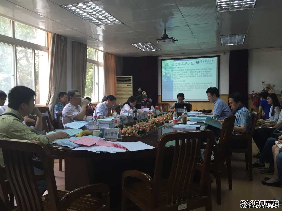5月16日上午八点半,我院行政管理专业2015年上半年全日制硕士研究生学位论文答辩拉开帷幕。本次论文答辩分成A、B两组分别于学院二楼会议室和419教室同时进行,张立荣老师、 徐增阳老师、 尤光付老师、徐军玲老师、冷向明老师组成了A组答辩委员会成员。B组答辩委员会成员则包括刘筱红老师、姚锐敏老师、傅广宛老师、费军老师和饶常林老师。欧阳铮老师和魏寅老师分别担任本次论文答辩A、B组的答辩秘书。2012级全体行政管理专业全日制硕士研究生参加了本次论文答辩。