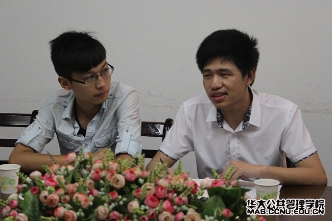 正式进入交流会,我院主席团代表首先对本届院研会概况作了简要介绍,并详细讲述了我院的特色活动——每年一届的“冬至包饺子”与元旦晚会。这两场大型活动,全员参与,影响深远,架起了师生之间沟通的桥梁。武大政管院研会副主席雷桐也向我们介绍了他们院的品牌活动——“怦然心动,非诚勿扰”。此活动的目的在于深化华中地区各高校研究生群体的交流与理解,努力构建各校间研究生群体的交流平台。每学期举办一次,目前活动开展已经进入第十季。此项活动还在腾讯网上报道过,广受关注与好评。我院副主席农春榕对武大政管院这项大型交友活动予以赞赏,并表示其成功之处值得我们学习。