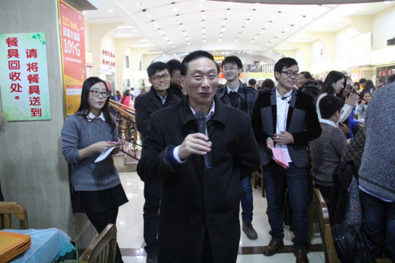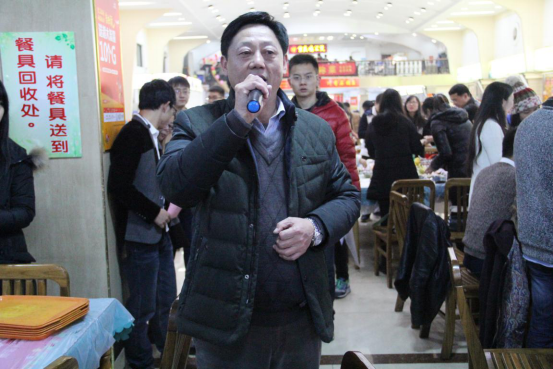 接着,我院院长张立荣也被盛情邀请给大家讲话。张院长说到,冬至是“冬起三九,凉气起兮”,真正的冬天就要来了,今天的包饺子活动看起来是驱寒取暖,实际上是以礼敬贤,尤其是凝神激励、兴我管院!他代表学院领导班子对此次活动的盛情开场表示热烈祝贺,祝愿在场全体老师和同学“包得顺手、谈得开心、吃得爽口”!