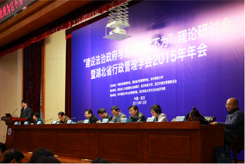 12月6日上午,“建设法治政府与治理为官不为”理论研讨会暨湖北省行政管理学会2015年年会在我校科学会堂召开。来自全国范围的各高等院校、社科院系统、党校系统、实际工作部门等两百余名专家学者参会,会议共收到投稿一百余篇。