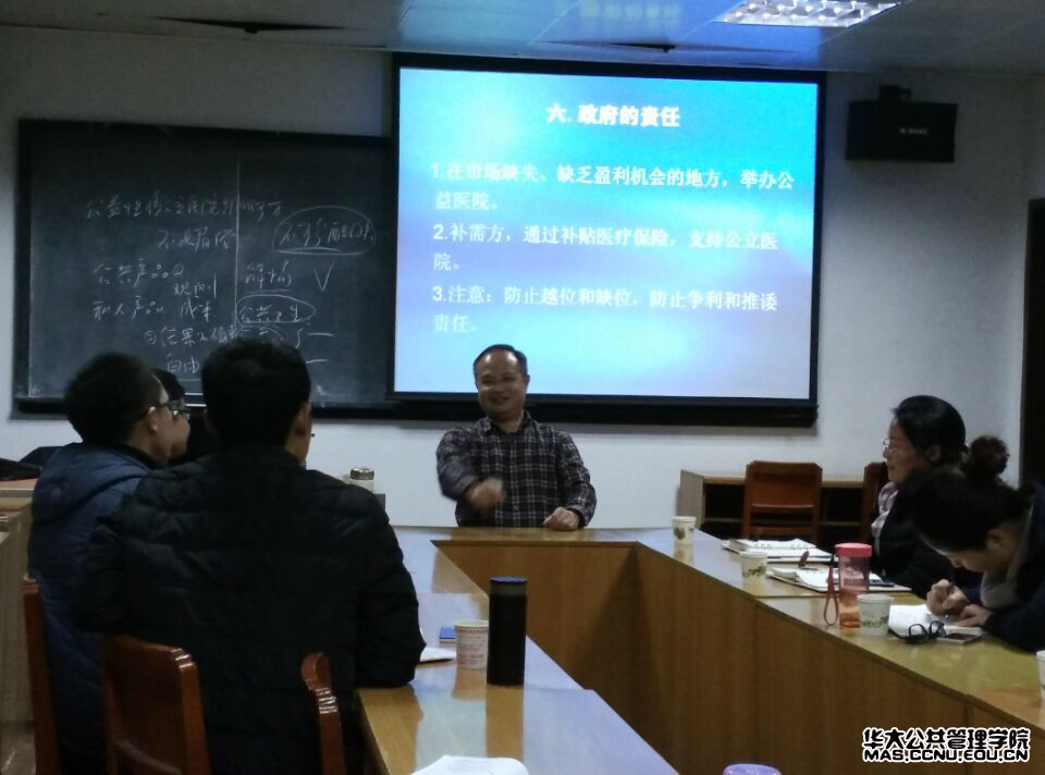 (通讯员:余海强)受华中师范大学银娱GEG优越会社会保障与卫生事业管理教研室邀请,12月4日下午15:00-17:30,中南财经政法大学医疗保险研究所所长、湖北经济学院医疗保险改革协同创新中心主任吕国营教授在我院419教室,为我院社会保障与卫生事业管理教研室全体教师和社会保障专业全体研究生做了题为“公益性将公立医院引向何方?”的专题讲座。