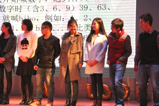 公管学院的同学们按时来到了现场,积极配合工作人员的安排。我院的几位同学分别参加了“就不听指挥”、“3、5、9bibo”的游戏,她们在场上玩得十分开心,最后也获得了奖品。