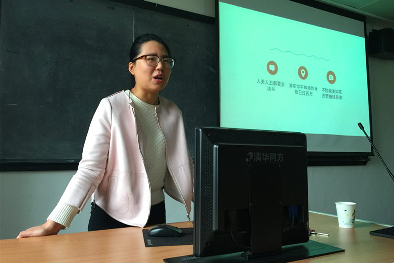 紧接着,2014级教育经济与管理专业张欣就自己学习与兼职的经历做了简要介绍。作为国家级奖学金获得者的张欣,在不耽误学习的情况下,利用课余时间积极参与社会实践,做到了学习工作双面赢家。在详细介绍了国奖评选资格之后,她分享了自己的三点认识:一是人丑人美都要多读书;二是其实你不知道你身价已过百万;三是不仅貌美如花,还要赚钱养家。她充满感染力的讲述,给在场的同学们带来鼓舞的力量。