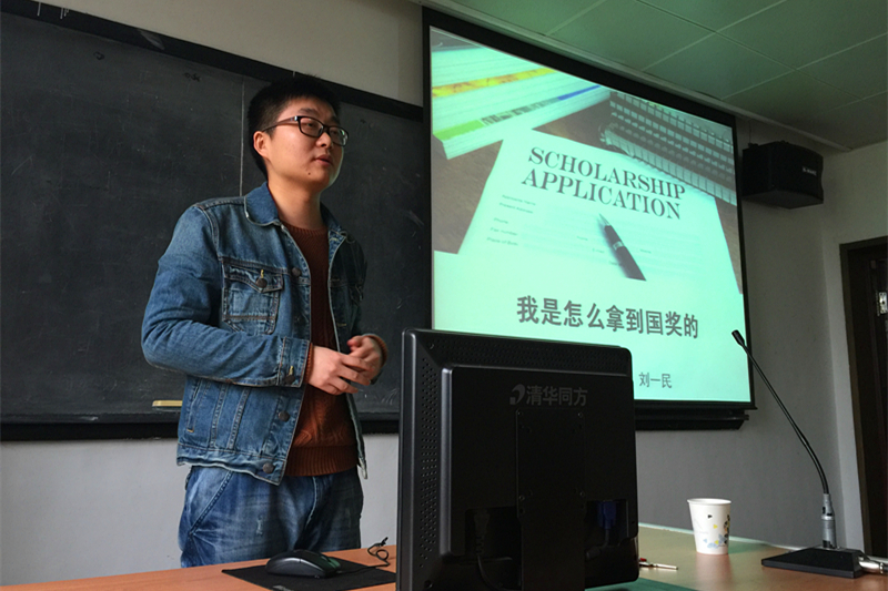 同样作为国奖获得者,也是团委副书记的14级研究生刘一民,就“我是怎样获得国奖的”为主题给大家进行了详细讲解。在考试方面,他建议可以根据不同老师的风格来答题,但一定要有自己的逻辑链条。在学习方面,他提倡开卷有益,抓紧现在的时间多读书,做调研。他还分享了自己真实的感悟:It’s never too late,准确定位,找好方向,就去奔跑。