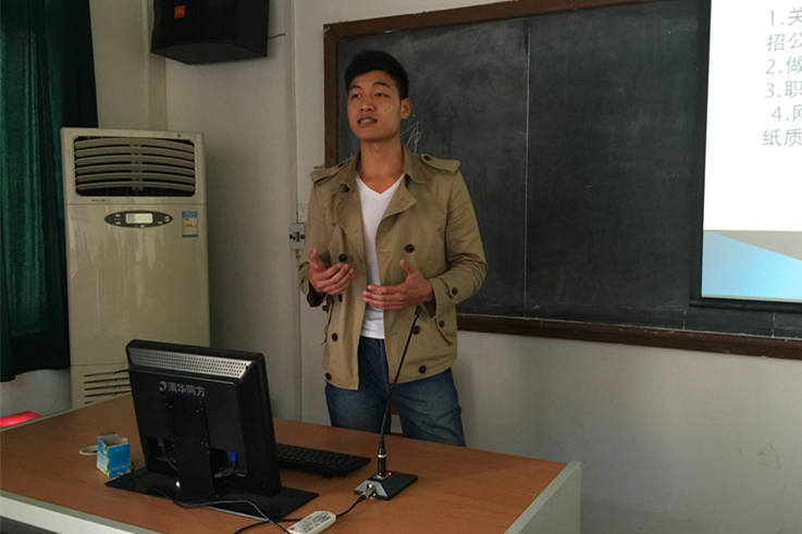 首先,已经签约厦门航空公司的企业管理专业黄振帮以“你的未来你创造”为主题,就笔试、面试和心态三个部分做了简单交流。笔试包括行政能力测试、英语和团队协作三个板块,在面试方面他重点谈到了无领导小组讨论的模式、特点、侧重点等等。另外,在心态方面,黄振帮建议在求职过程中应该避免焦虑,保持健康心态。与此同时,他提出“用实干让情怀落地”与在场的同学们共勉。