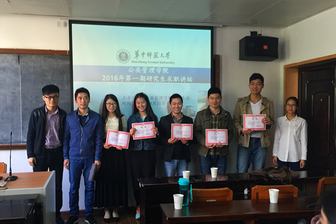 又是一年毕业季,又是一年丰收时。4月11日上午,由我院研究生会主办的2016年第一期研究生求职讲坛在银娱GEG优越会319教室成功举行。六位优秀的学姐学长做客此次求职讲坛,和大家面对面交流求职技巧,分享丰富的求职经验。研究生辅导员魏寅老师,兼职辅导员农春榕老师出席讲坛,本次活动由研会学术部副部长王星星主持。