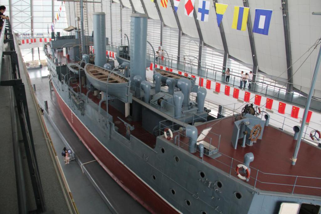 进入博物馆后,大家便被眼前的实体中山舰吸引住了:眼前的中山舰,经过专家团队的修复,犹如即将拔锚起航,气势恢宏。在博物馆二楼和三楼,我们看到了从中山舰打捞出水的各类文物近3000件,其中经遴选出铭牌标志、舰载设施、生活用品、武器装备四大类型的文物近300套进行展出。它们从不同角度反映了中山舰在各个历史时期的政治、军事、经济、文化等社会活动及该舰官兵们的精神面貌。尤其通过近、现代先进的声、光、电、波等技术手段来展现,更彰显其历史的厚重与辉煌。这些物品见证了中国人为民族、国家的存亡而抛洒的汗水和热血,激励着我们当代年轻人为祖国的繁荣昌盛而努力奋斗的信念。同学们一边瞻仰着中山舰的昂首英姿,一边紧紧跟着讲解员认真的听着那段历史,感受着中华民族近百年来的兴衰沉浮。