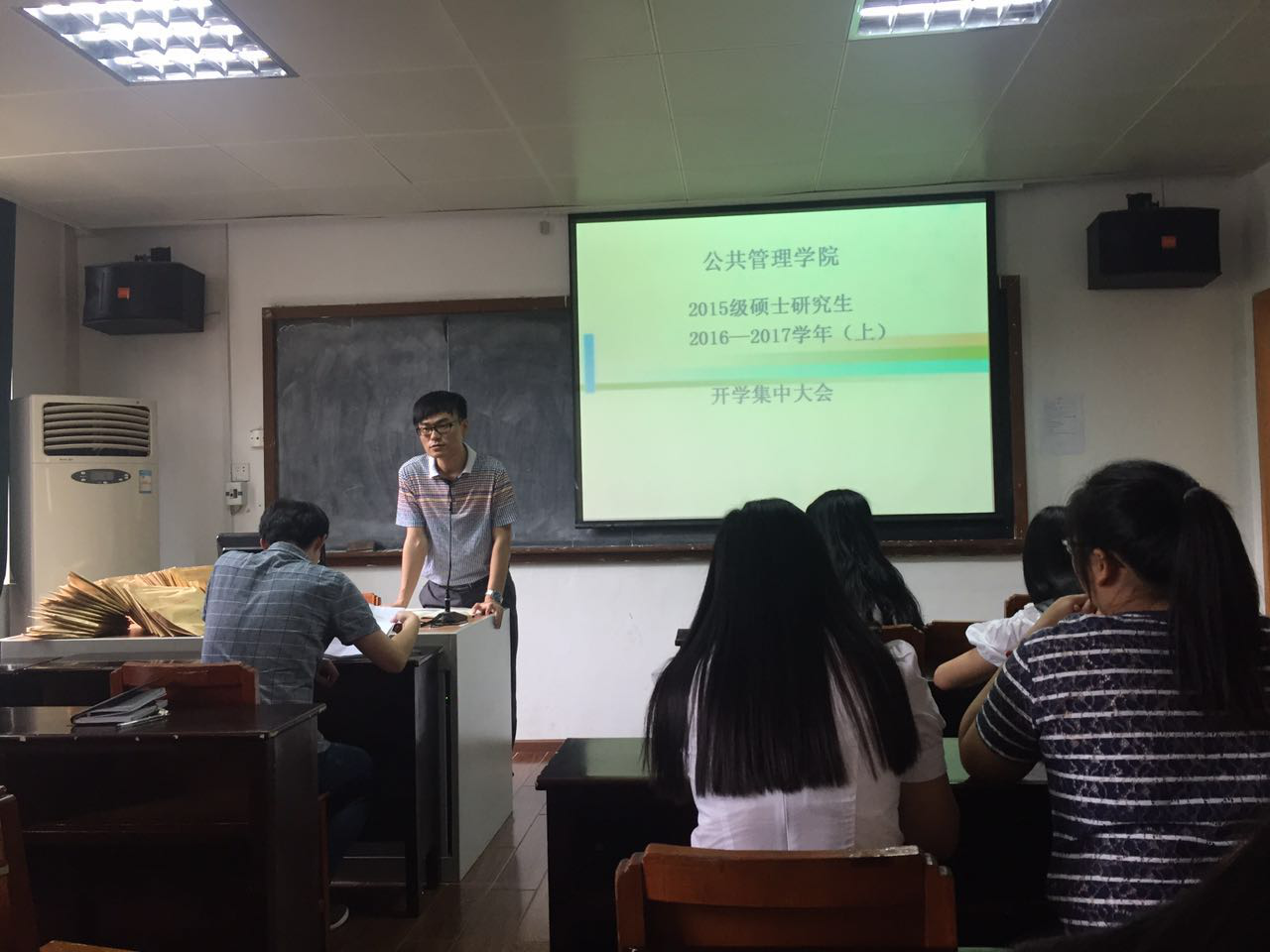 2016年8月31日16:00,2015级硕士研究生开学集中大会在银娱GEG优越会319教室举行。研究生辅导员魏寅老师、研会主席童志阳以及2015级全体硕士研究生参加此次大会,大会由2015级年级研会主席姜琳主持。