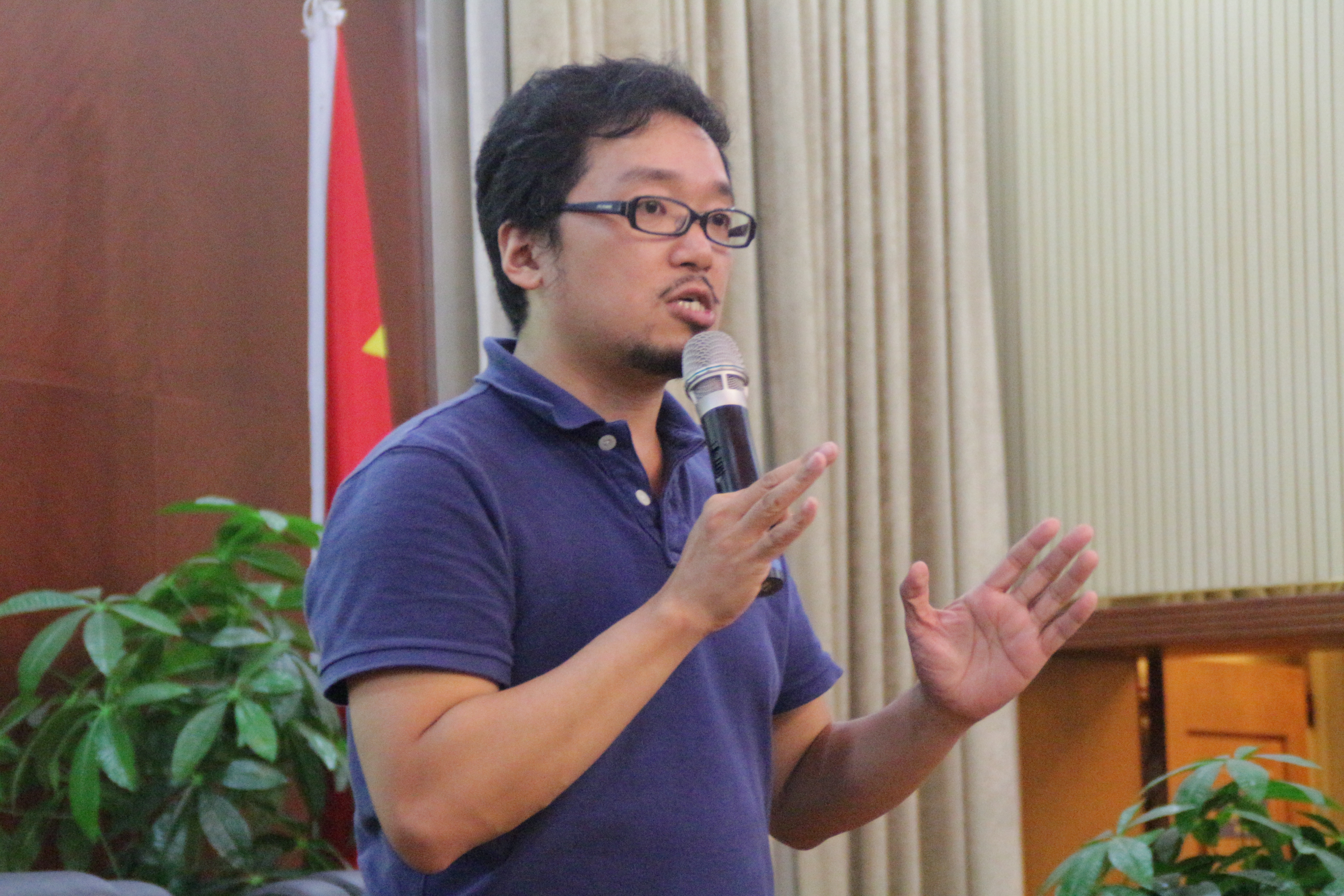 叶茂老师则就如何学习英语、提高口语水平向同学们传授了不少经验。从满口中式英语到成为新东方小有名气的人气讲师,叶老师在初学英语时也曾闹出过不少笑话,他的不吝分享,瞬间活跃了会场气氛。叶茂老师介绍了自己通过收听英语电台、学唱英语歌以提高口语水平的经验,还鼓励同学们积极参加英语角和各类演讲比赛。他特别指出比起口音纯正更重要的是敢于开口,纠正了同学们的固有观念,为同学们更快提升英语水平提供了新的思路。