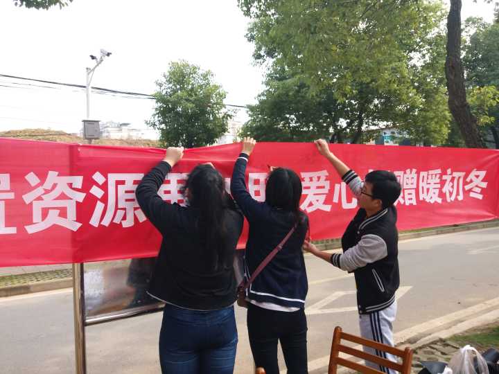 活动当日,生活部的成员们提前半小时到达现场进行布置,搬桌椅、挂横幅、打印登记表格、准备装衣物的编织袋,大家各司其职、井然有序。接着,各院工作人员引导参与活动的同学做好登记,并在横幅上面签名留念。我院生活部的同学们在本次活动中表现尤其突出。常飞同学作为部门唯一的男生,承包了所有的体力活,并积极宣传活动。朱家莹同学也尽心尽力地制作打印登记表、准备编织袋、号召同学们参与活动。