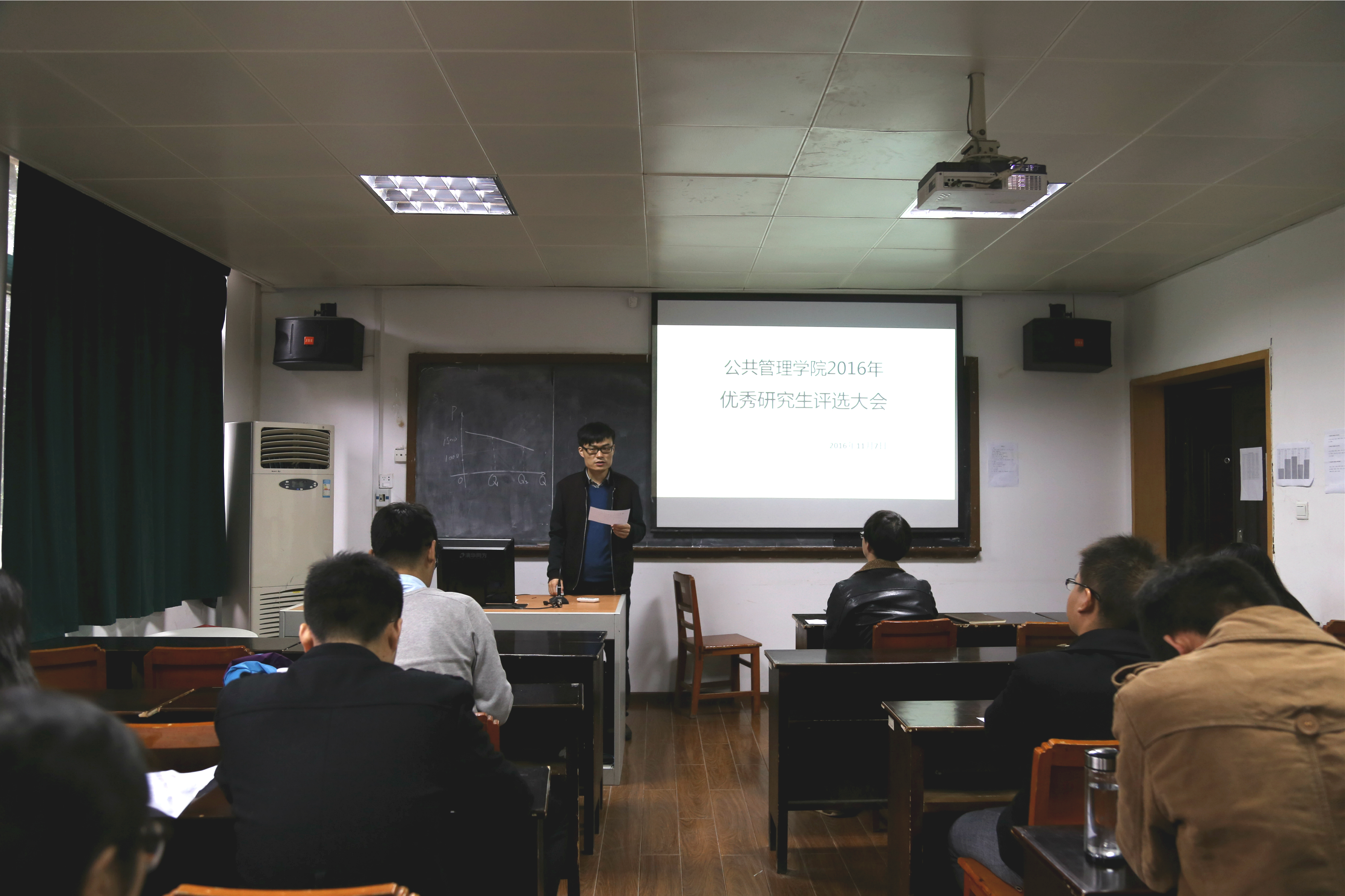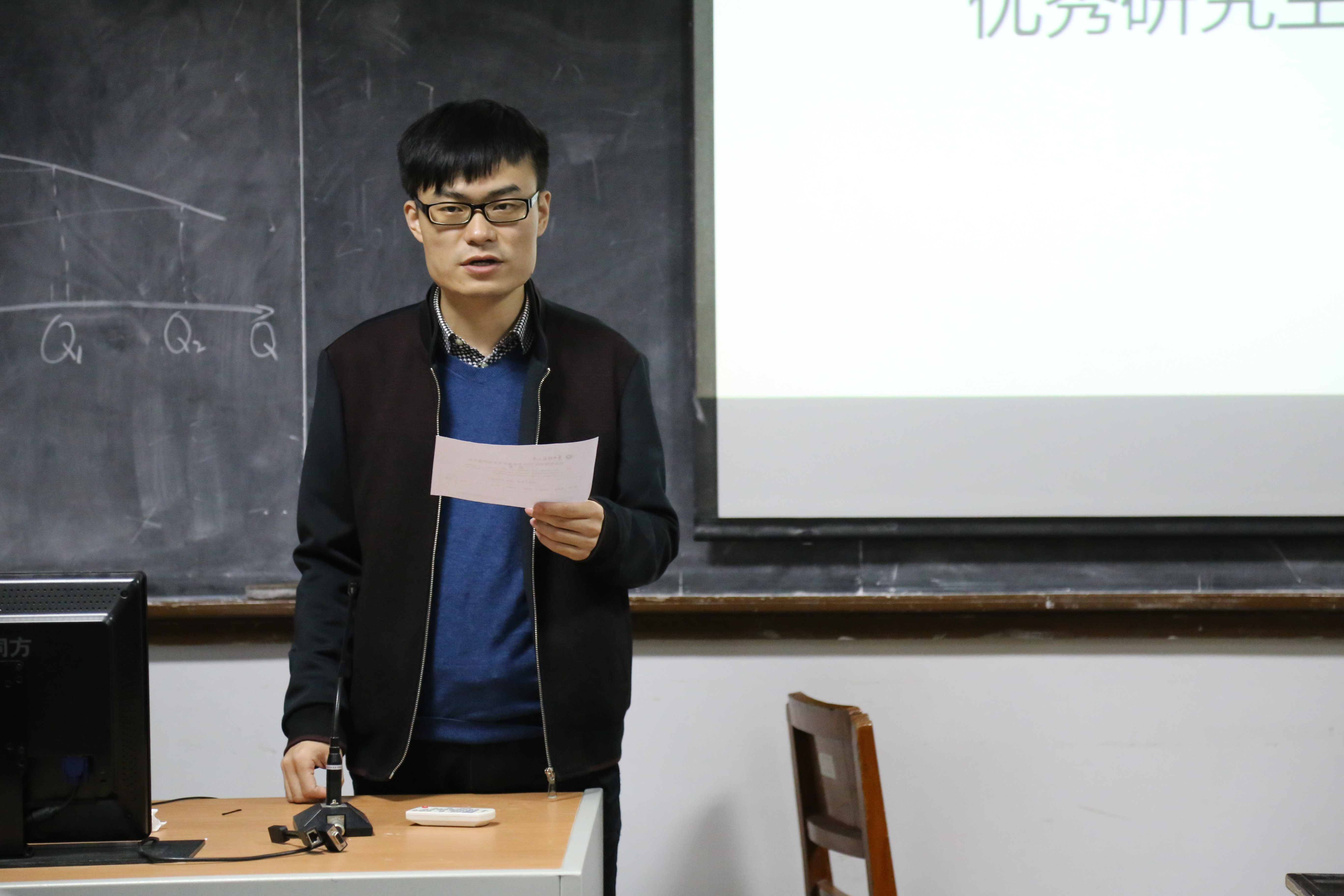 首先,魏老师致辞,他谈到今天是一次优中选优的竞选,希望竞选成功的同学继续在各方面保持优秀、起到表率作用,没有评上的同学也能平衡心态、继续加油,同时也希望评审团的每位同学经过慎重考虑投出自己宝贵、神圣的一票,推选出大家心中最符合优秀研究生标准的同学。