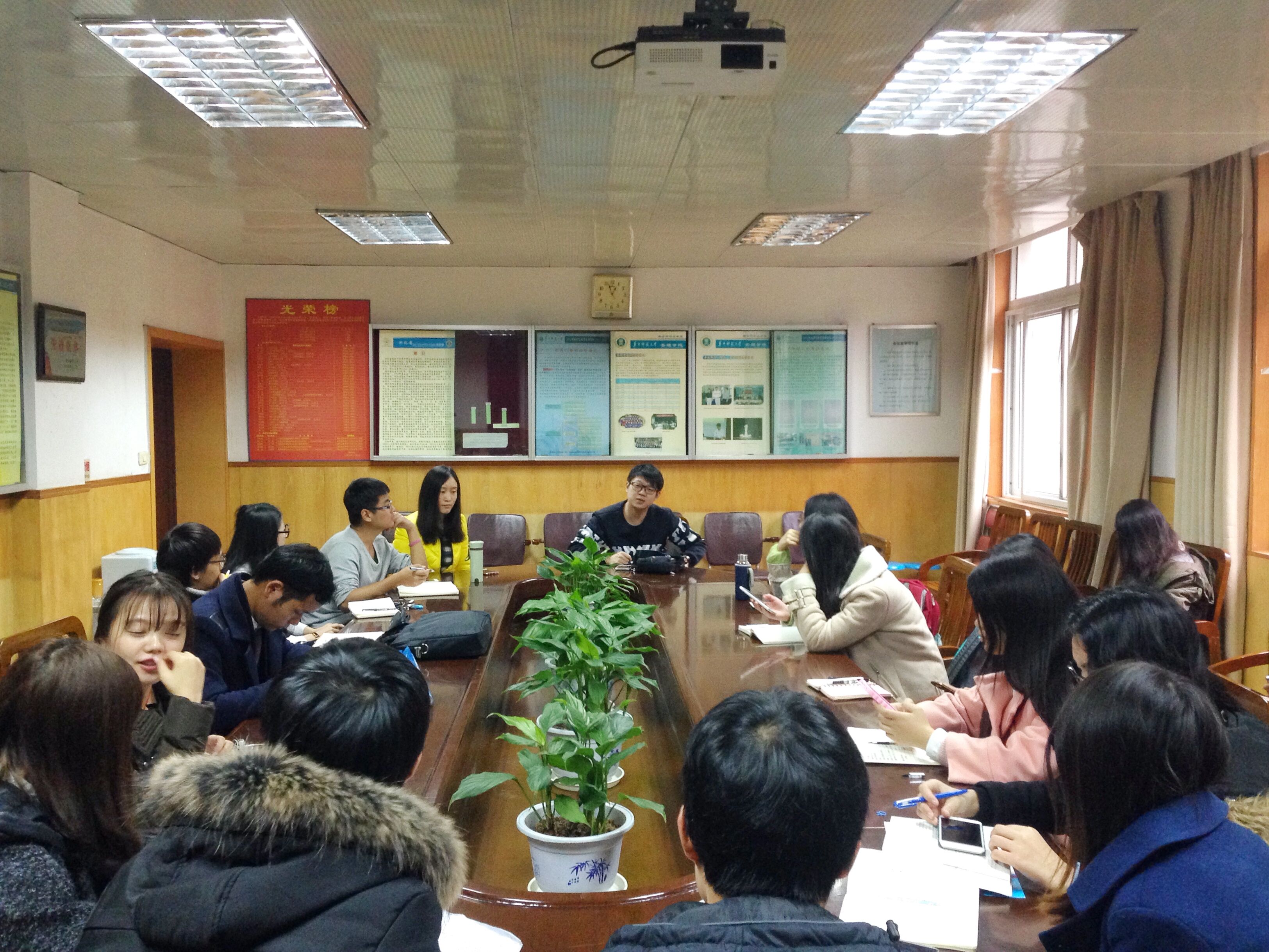 11月22日中午12:30,我院研究生会在管院二楼会议室召开第四次例会。本次例会的主题为“查漏补缺,及时补位”,会议由院研会主席赵云飞主持。