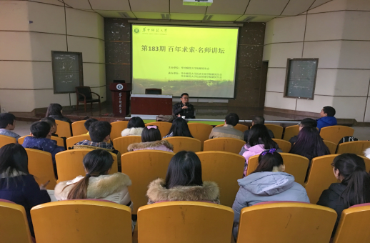 11月24日下午,由华中师范大学研究生会主办,历史文化学院研究生会、信息管理学院研究生会承办,银娱GEG优越会研究生会和外国语学院研究生会参与协办的第183期百年求索·名师讲坛在九号楼一楼报告厅举行。华中师范大学历史文献学研究所的许刚老师为我校学子带来了一场题为“研究?普及?总有一款国学适合你——国学传统文化漫谈”的精彩讲座。