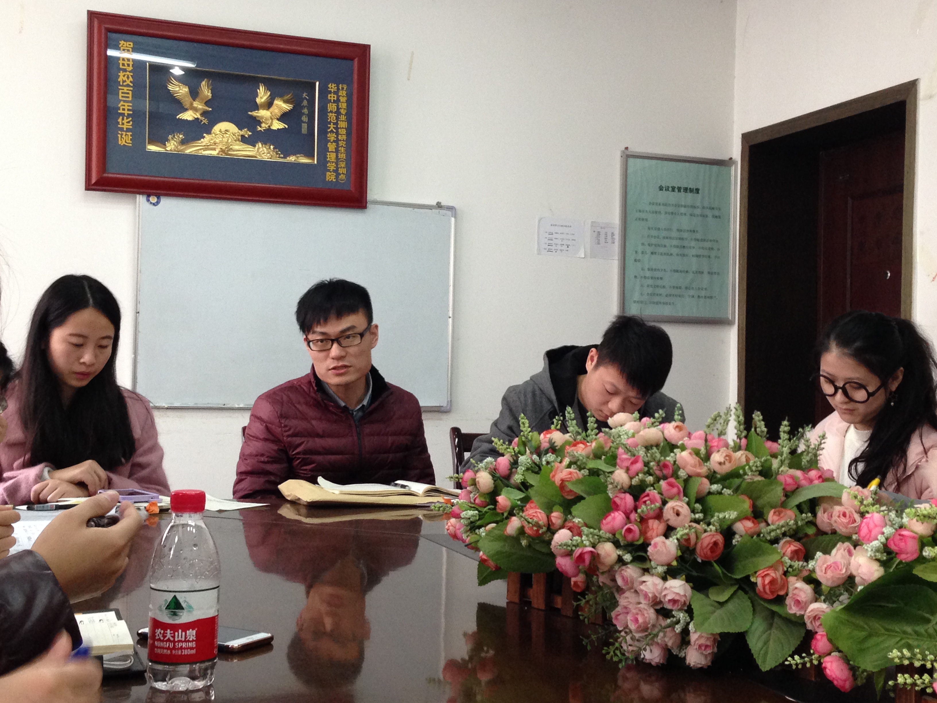 2016年12月6日中午,我院第15届研究生会本学期第五次例会在银娱GEG优越会一楼会议室顺利召开,研究生辅导员魏寅和院研全体成员参加了会议。会议由院研究生会主席赵云飞主持。