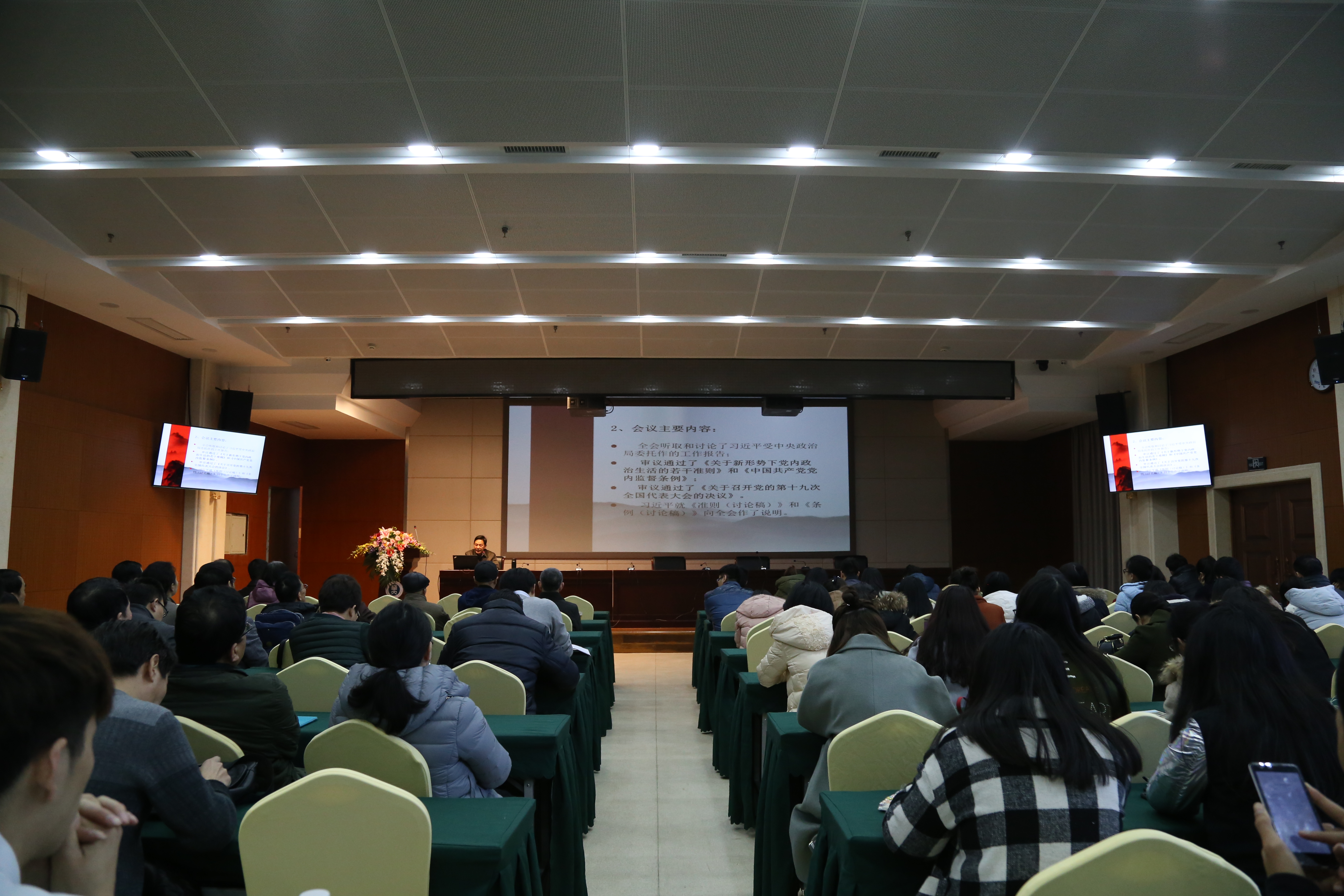 为进一步深入贯彻学习党的十八届六中全会精神,帮助师生党员更好地理解十八届六中全会的精神实质和丰富内涵,12月16日下午,我院特邀马克思主义学院中共党史研究室的钟德涛教授为全院师生党员作了题为“十八届六中全会:全面从严治党的重要里程碑”的主题报告。报告会由银娱GEG优越会院长卢新海主持,学院全体教职工党员、离退休党员和学生党员参加学习。