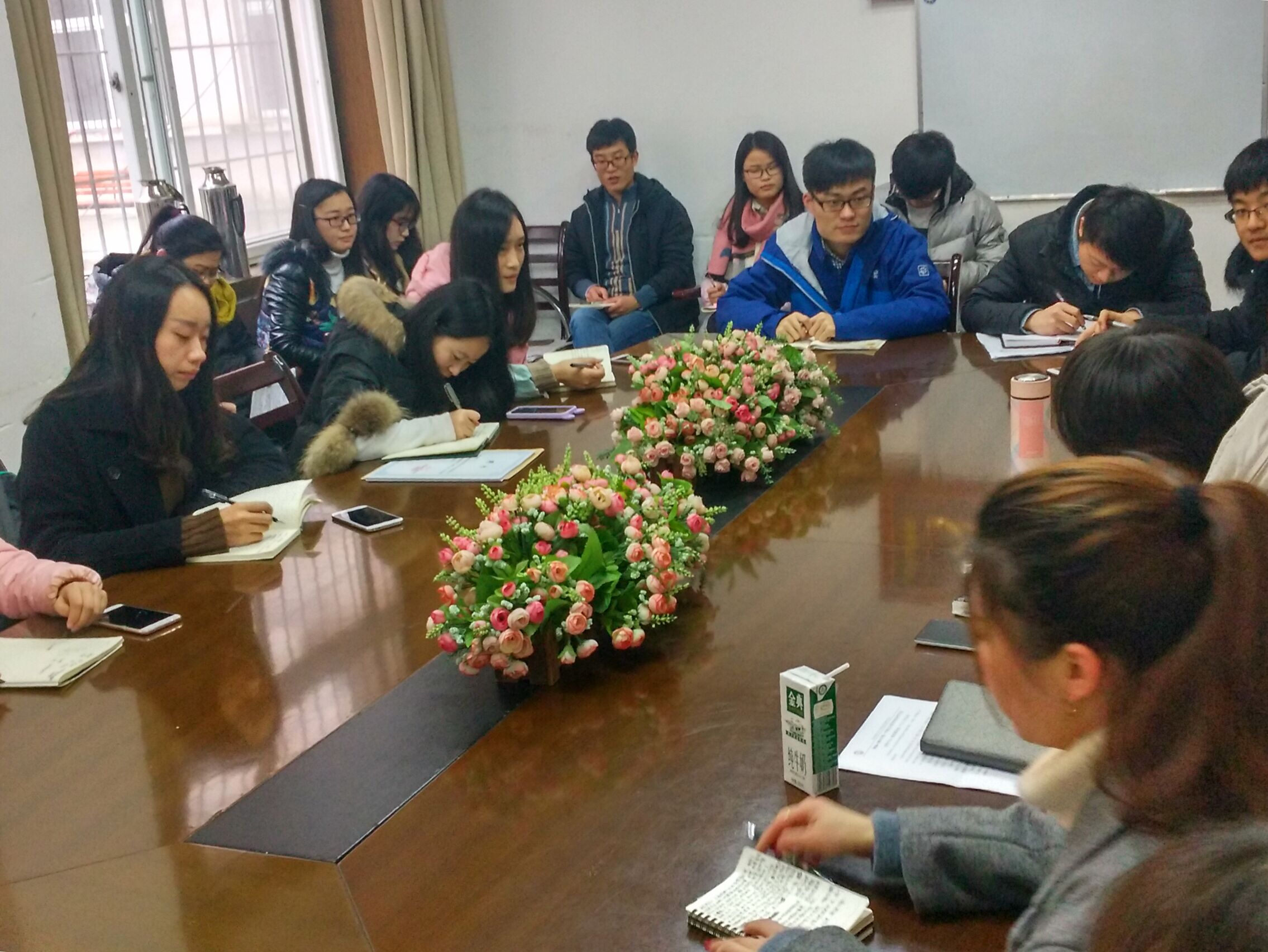 魏寅老师认真聆听了大家的交流后,做了总结讲话。他代表辅导员办公室对15届研会全体成员的辛勤付出表示了感谢。希望整个团队在研会开心工作,因研会成就自己,也通过自己的工作为研会的发展贡献力量。并预祝大家新年快乐,事事顺利,在新年里研会和个人都有新发展、新面貌!