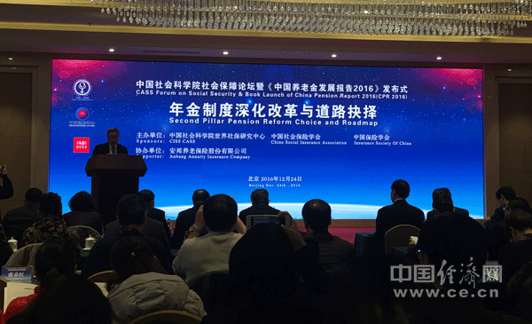 12月24日,以“年金制度深化改革与道路抉择”为主题的“中国社会科学院社会保障论坛暨《中国养老金发展报告2016》发布式”在京召开。此次论坛为第六届,由中国社会科学院世界社保研究中心、中国社会保险学会、中国保险学会联合主办,安邦养老保险股份有限公司协办。中国社会科学院副院长李培林,中国社会保险学会会长、人力资源和社会保障部原副部长胡晓义,中国保险监督管理委员会原副主席周延礼出席并分别发言。中国社科院美国所所长、世界社保研究中心主任郑秉文主持论坛开幕式。