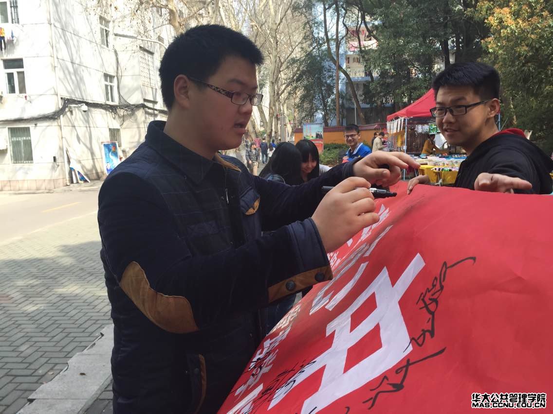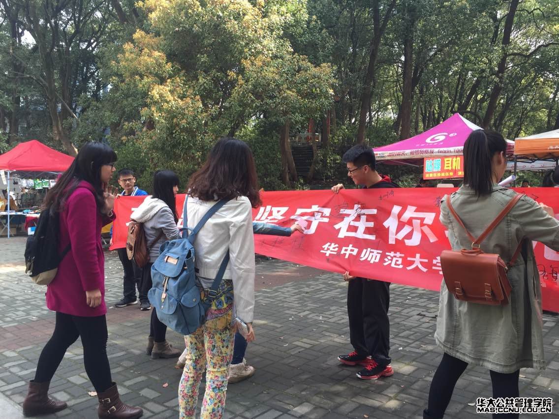 2015年3月23日,本科2013级团支部响应校团委的号召组织了主题为“文明出行,坚守在你我心中”的文明出行签名活动。