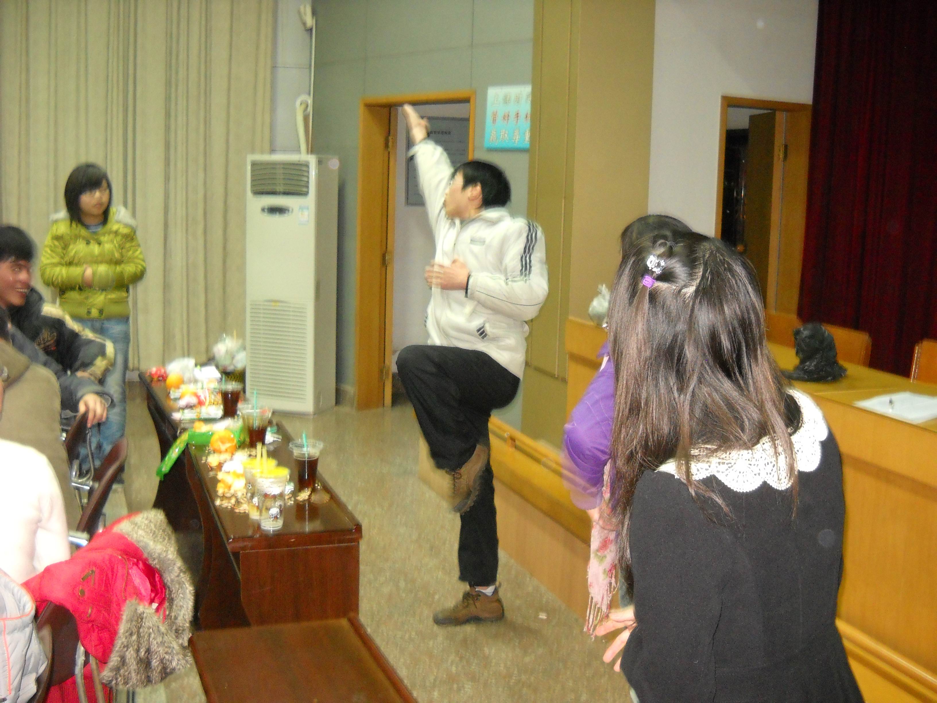 管院讯(通讯员 杨莹莹)12月13号晚管理学院07级特色团日活动在管院102教室成功进行。管院07级全体同学在非常具有特色的和参与性的团日活动中度过了愉快轻松的一晚。此次团日活动一改往日老套沉闷的讲述和教育,以发现快乐、传播快乐为主题,开展了一系列富有创意而精彩的活动,在同学们的高度参与中带来了轻松、快乐,并为已经大三的同学们有些沉闷的心情带来了清新的空气。同学们事先要带好自己喜欢吃的食品,以新颖的抽签方式确定坐的位置后,与邻座的同学互相交换零食吃。活动以观看倒霉熊的搞笑视频在笑声中正式拉开序幕,接着大家以欢呼声高低选出了班级男女快乐指数最高的两位,并与大家分享他们的快乐。接着又抽出两位同学,与两位快乐大使用拥抱来传播快乐。接下来最有趣的是大家按事先分好的组坐成五个大圈,按每组的顺序,抽出一个事先写好的名字和事件,那么被抽中的同学就要完成另张纸上写的事件。同学们创意无限,写出了很多令人乍舌的事件,但是我们的同学都勇敢的完成了抽中的事件。一轮一轮的抽签让同学们在期待和猜测中情绪高涨,一波一波的笑声使活动在享受和兴奋中高潮迭起。