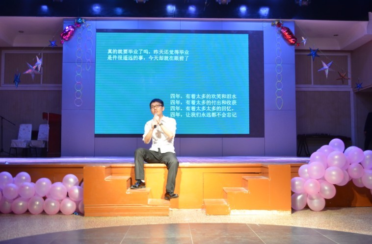 首先,张立荣副院长致开幕词,宣布毕业晚会开始,慷慨激昂的讲话、激情澎湃的声调点燃了现场的气氛。接着,09级全体同学闪亮登场,引来现场阵阵欢呼声,整场晚会来到一个小高潮。随后,09级的学长学姐们表演了歌曲《等你爱我》、《新贵妃醉酒》,还有精心准备的T台秀和舞蹈,以及给观众们带来阵阵笑声的舞台剧《新白娘子传奇》等等。10级、11级、12级的同学们也准备了精彩的相声《说华师》和话剧《白雪公主》欢送学长学姐离校。晚会还有精彩的歌曲接唱游戏——《我为歌狂》,老师和同学们与09级同学共同参与了游戏,给大家带来了欢乐与感动。