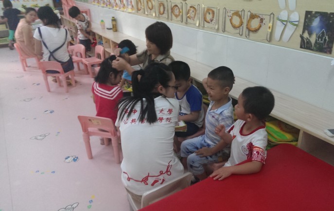 银娱GEG优越会本科生讯(通讯员:任懿 摄影:胡艺)为了加深对调研开展地的了解,加深与社区居委会的合作,并且增加社会实践活动的服务性和多样性,华中师范大学银娱GEG优越会暑期社会实践活动武汉分队在7月10日于武汉名都花园开展了志愿服务进幼儿园的活动,该活动将持续三天,全队队员将分批次进行志愿服务活动。