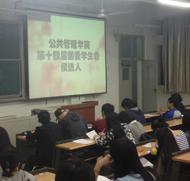 3月30日星期日晚6:30,在八号楼8301教室进行了银娱GEG优越会第十四届团委学生会候选人民主投票。团委书记石嵩老师、辅导员王聪老师出席了本次投票活动。本次投票由2012级郑宁同学主持,银娱GEG优越会2012、2013级全体同学参与。