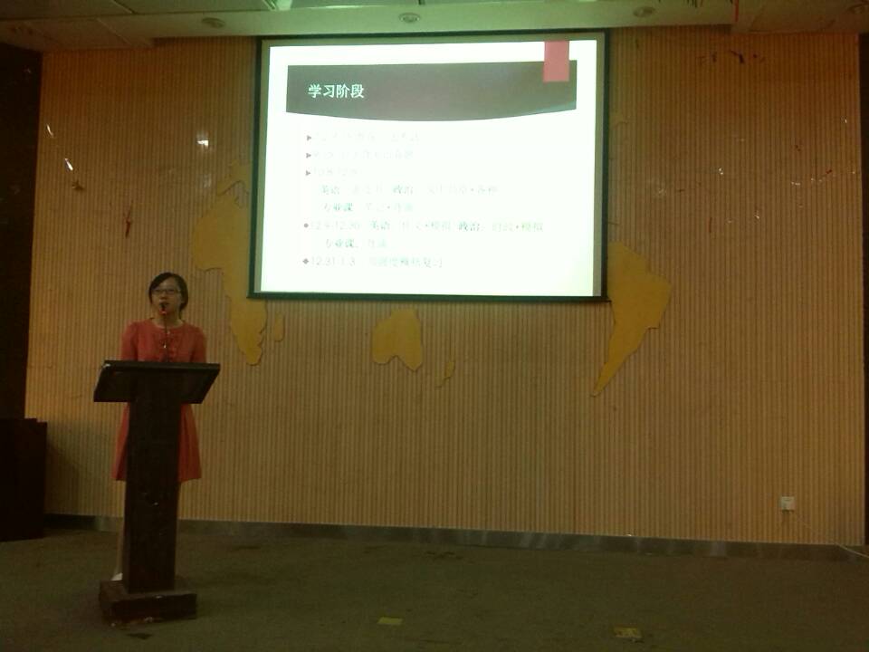 接下来是来自公管学院的姚烨申学姐和曹政璐学姐分享出国留学的经验。姚烨申学姐已被爱丁堡大学录取,而曹政璐学姐也被约克大学录取。姚烨申学姐向观众们分享了通过留学中介帮助参考出国留学的方式,告诉了大家一些在挑选中介中要特别注意的地方,并且还分享了她在考雅思时的一些经验,为大家介绍了许多有用的参考资料和网站以及她个人在考雅思时的方法。曹政璐学姐则同大家分享了DIY的出国留学经验,为那些不愿找中介的同学提供了许多有用的建议。对于选学校和选专业以及申请学校时的一些经验和技巧,还有整个出国留学的流程等方面,曹政璐学姐都进行了详细叙述。